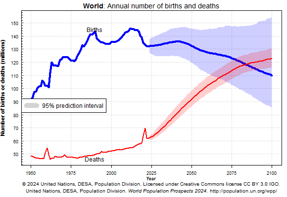 Also, with an increasing longevity, it is not absurd to think of a country in 2100 having more centenarians than under 5s.